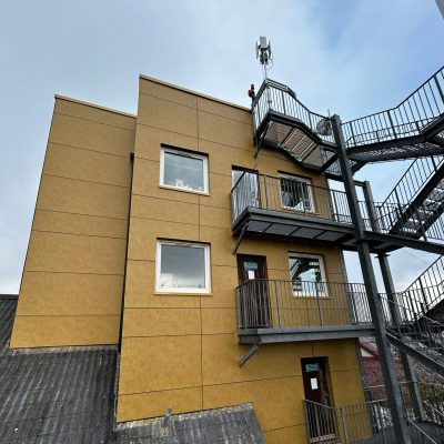 We installed a Rockpanel Natural Stones rainscreen system in sandstone colour, chosen for both its architectural appeal and certified fire performance. Despite the site’s complexity and exposure to adverse weather, the project was completed on time and within budget—demonstrating our ability to deliver in high-security and high-risk environments.