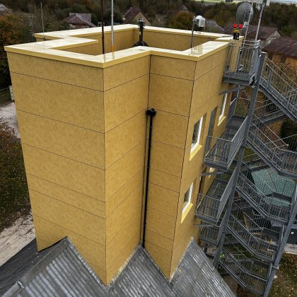 Removed and replaced outdated panels with A1-rated fire-resistant aluminium cladding.